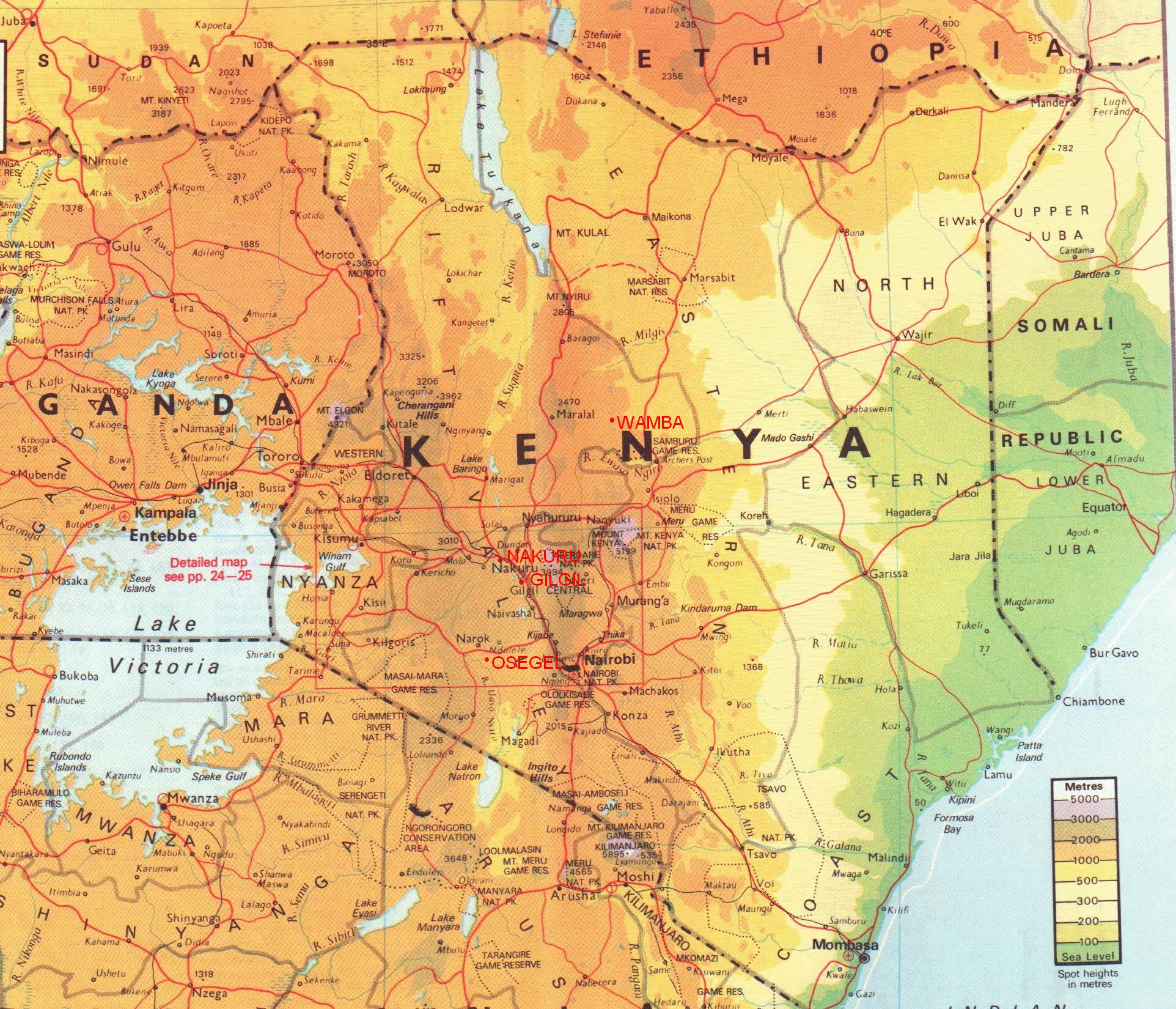 These maps give a general overview of Kenya. We've spotted all the locations where we spend most of our time.